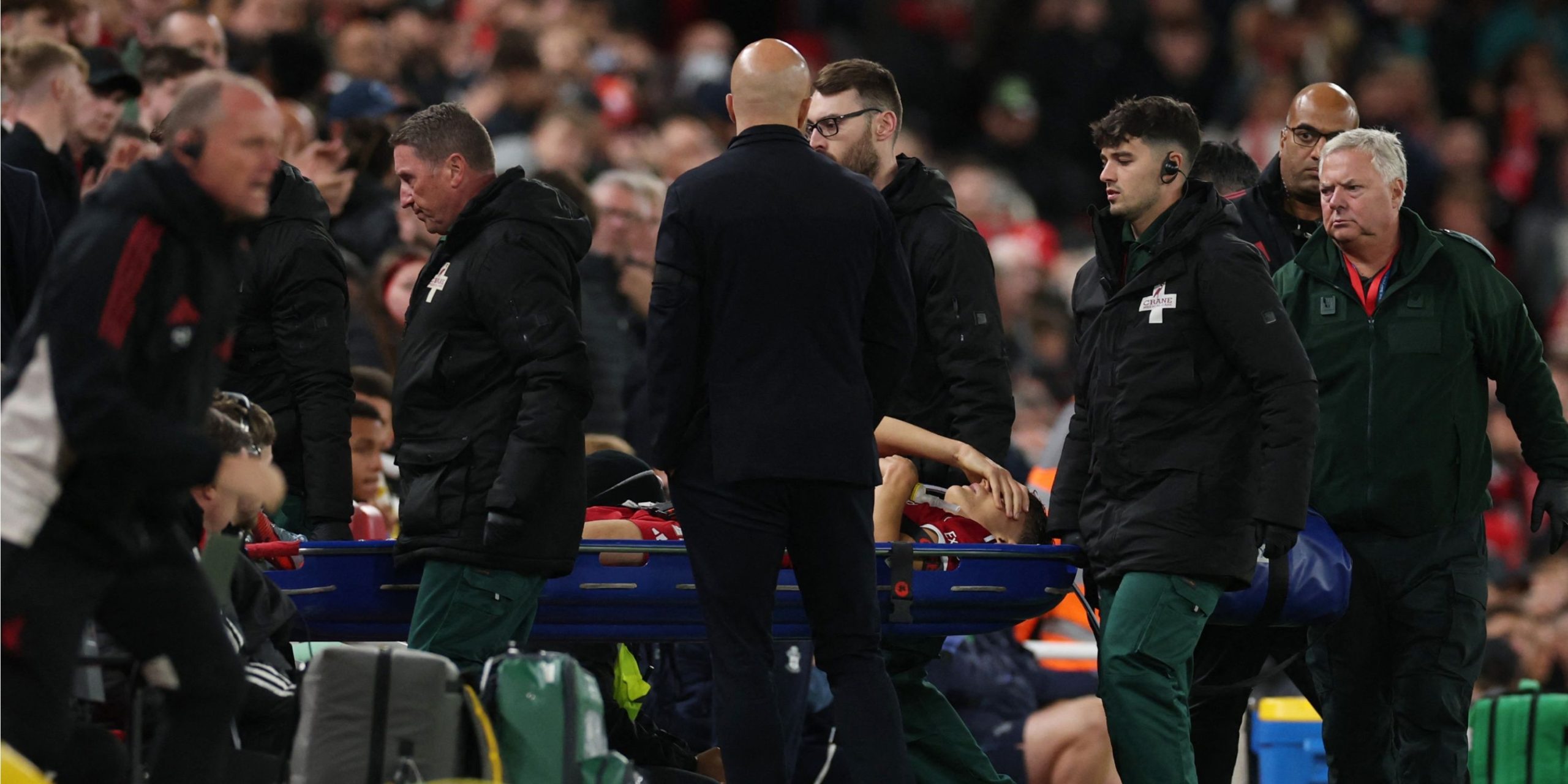 It was also a night to forget for one of Liverpool’s other new boys, who was stretchered off on his debut amid concerns about what would be the ultimate injury blow.
